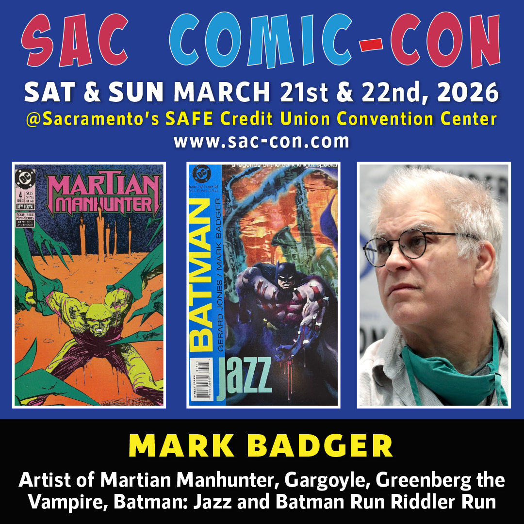 Mark Badger is an American comic book artist, writer, and painter known for his distinctive fusion of fine art aesthetics and graphic storytelling. Starting at Marvel with Gargoyle in the the early 1980s, Badger quickly gained recognition for his bold line work, expressive figure drawing, and experimental page design. He did Greenberg the Vampire graphic novel at Marvel, Masque in the first year of Dark Horse. His Martian Manhunter mini-series with J.M. DeMatteis was a wildly experimental work before DC was ready to accept visual experimentation. His haunting, surreal interpretation of the character was most visually unique runs DC has ever published. Throughout the 1980s and 1990s, Badger contributed to numerous major publishers, including Marvel Comics and DC Comics, working on titles inking and coloring Mike Mingola’s Dr Doom/Dr Strange story, painting the Score with Piranha press and other work. One of the first artists to start working on the computer be did Spiderman Online for Marvel and AOL(remember them?).