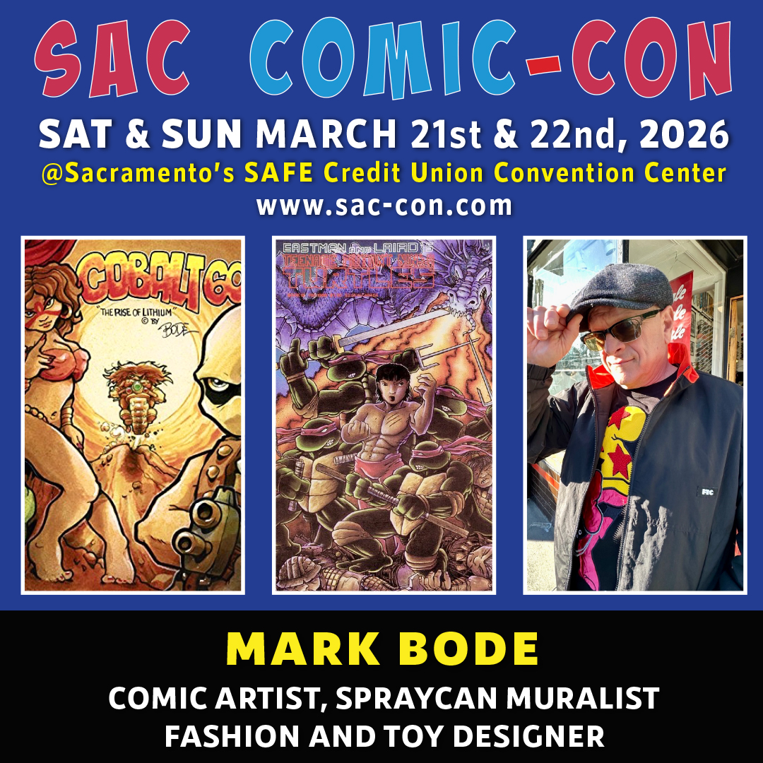 Mark Bode- Mark is a comic artist, spraycan muralist, fashion and toy designer. His comic credits include Cobalt 60, Lizard of Oz, Miami Mice, Teenage Mutant Ninja Turtles, Cheech Wizard’s Book of Me, Heavy Metal Magazine, and his “Gyro Comics” trilogy. He recently finished a 86 page graphic novel “The Rise of Lithium” the final chapter in his Cobalt 60 saga. Most recently he has made extensive trips to Japan where he is doing art shows toy and clothing lines with companies in Tokyo. Instagram markbodeofficial